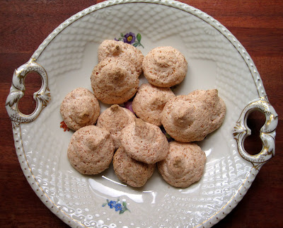 Jeg sidder og knokler i eksamensopgaver i øjeblikket, så der bliver ikke lavet ret meget mad. Og den smule der bliver lavet, er bestemt ikke værd at skrive om. Men jeg har gået og drømt om kokosmakroner de sidste par uger (don't ask me why...?), så den anden dag tog jeg en halv times overspringshandling (længere tog det ikke) og bagte disse her små, lækre makroner. Den revne citronskal var en pludselig indskydelse, men den fungerer rigtig fint sammen med alt det søde.