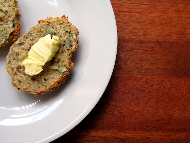 Her i eksamensperioden, hvor man helst skal stå klar foran CBS's læsesal klokken meget tidligt om morgenen med rundsave monteret på albuerne for at få en plads, er det ikke altid, at der er tid til at spise morgenmad hjemmefra. Men hvis man på den anden side ikke gider spendere sin halve indtjening i kantinen, er det meget rart at have noget liggende, som bare kan smides i tasken på vej ud af døren. For eksempel de her muffins.