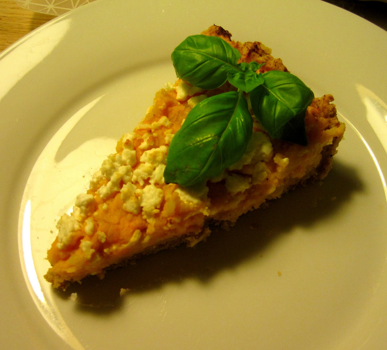 Til fyld 2 smøres bundene først med kikærtedip, derefter fordeles mozzarellaost og squash henover, og til sidst drysses med oregano og basilikum.