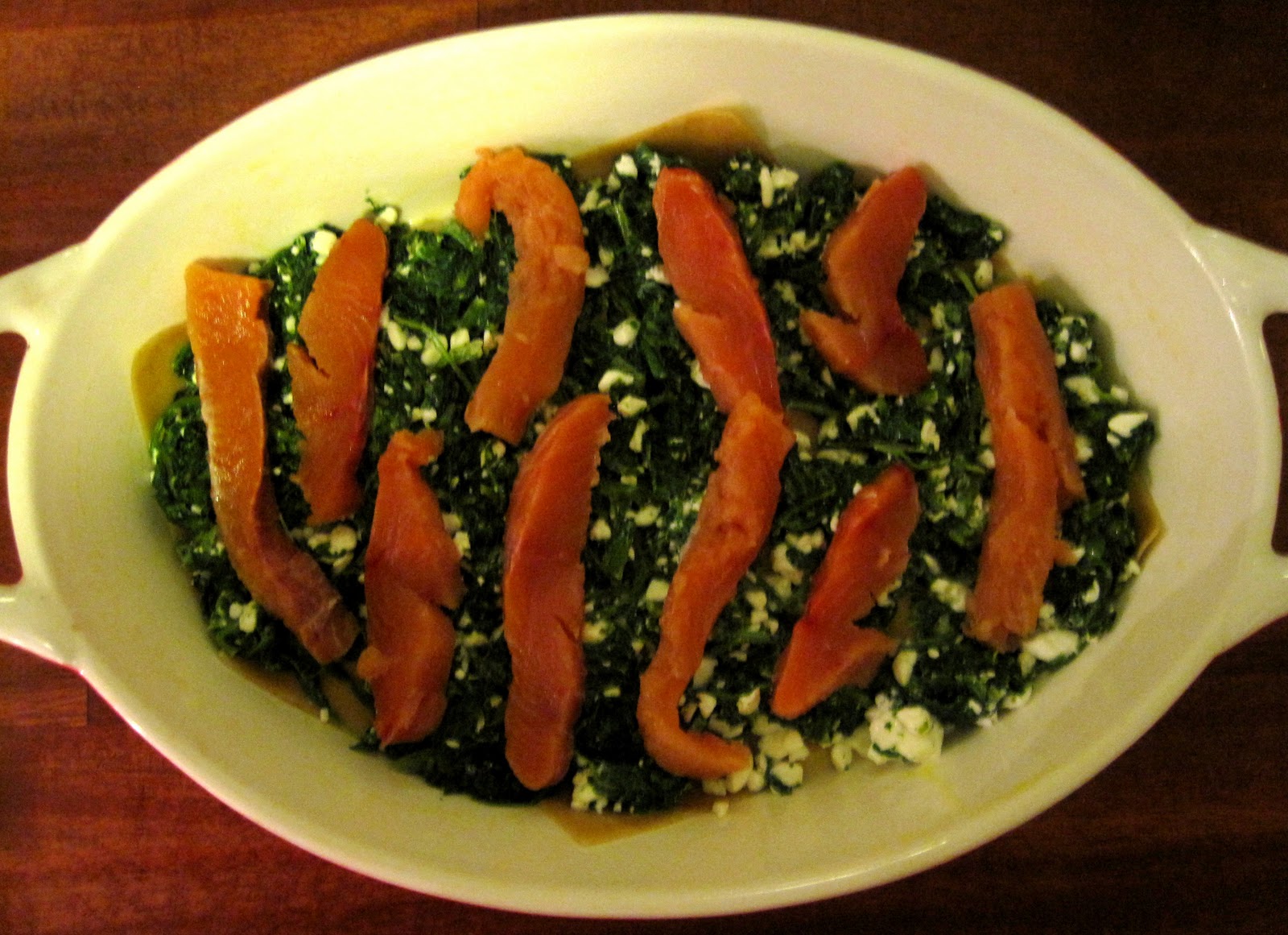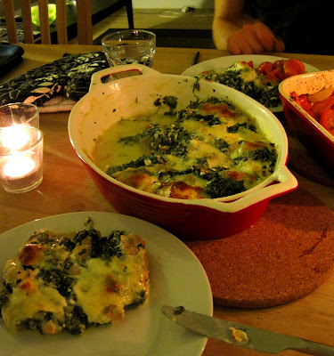 Lakselasagne med spinat, hytteost og citronsauce: (4 personer)